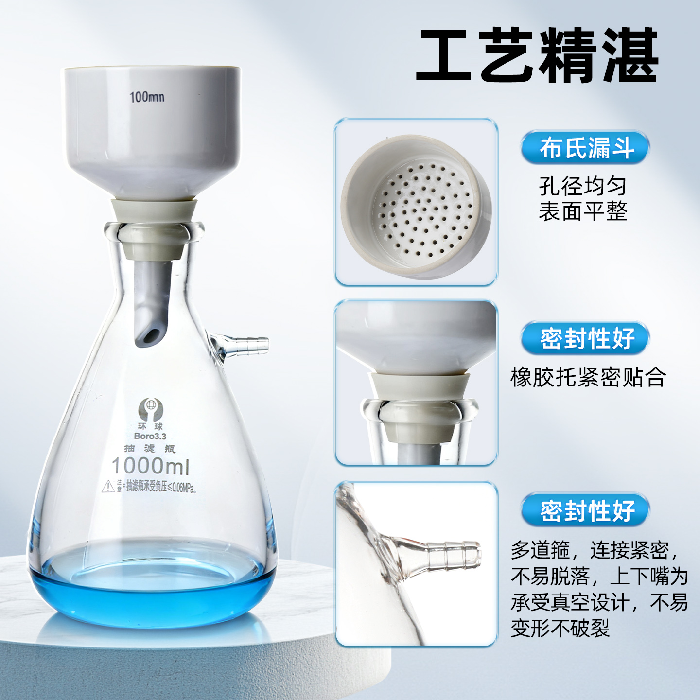 250 置125 500 1000 5000ml上下嘴溶剂过滤器 环球抽滤瓶套装 2500 实验室上嘴抽滤瓶陶瓷布氏漏斗真空过滤装