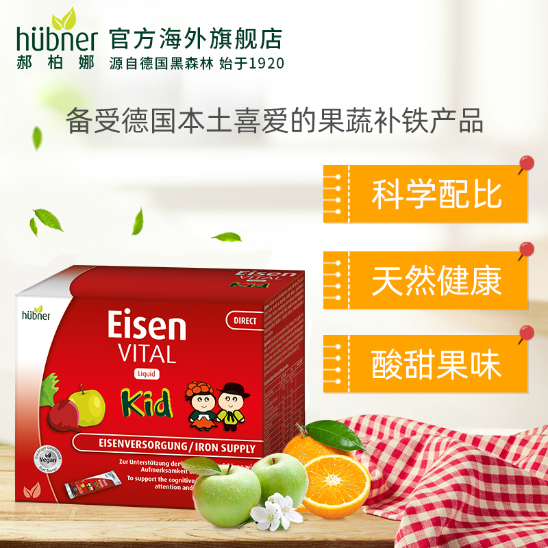 huebner德国果蔬儿童补铁宝宝口服液小孩补贫血气血铁剂铁元 素