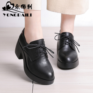 女鞋 百搭圆头系带女单鞋 坡跟摇摇鞋 松糕跟豆豆鞋 女韩版 老北京布鞋
