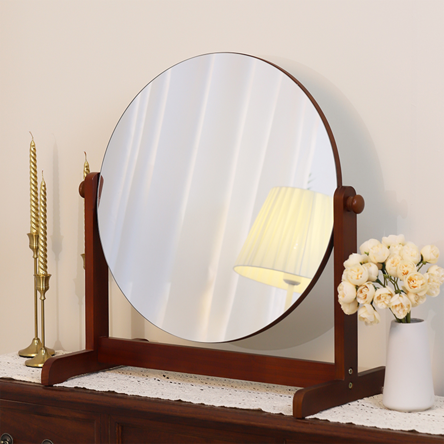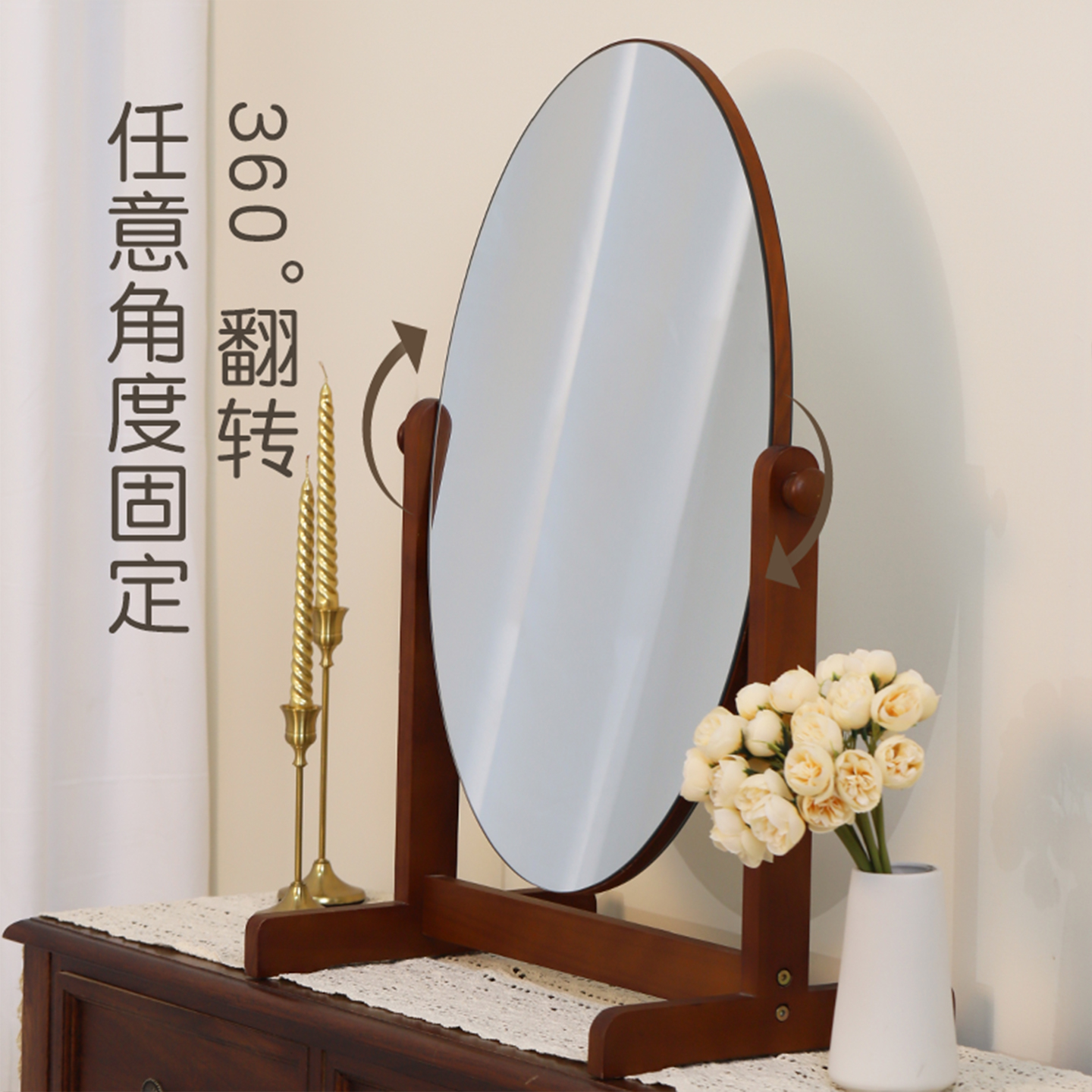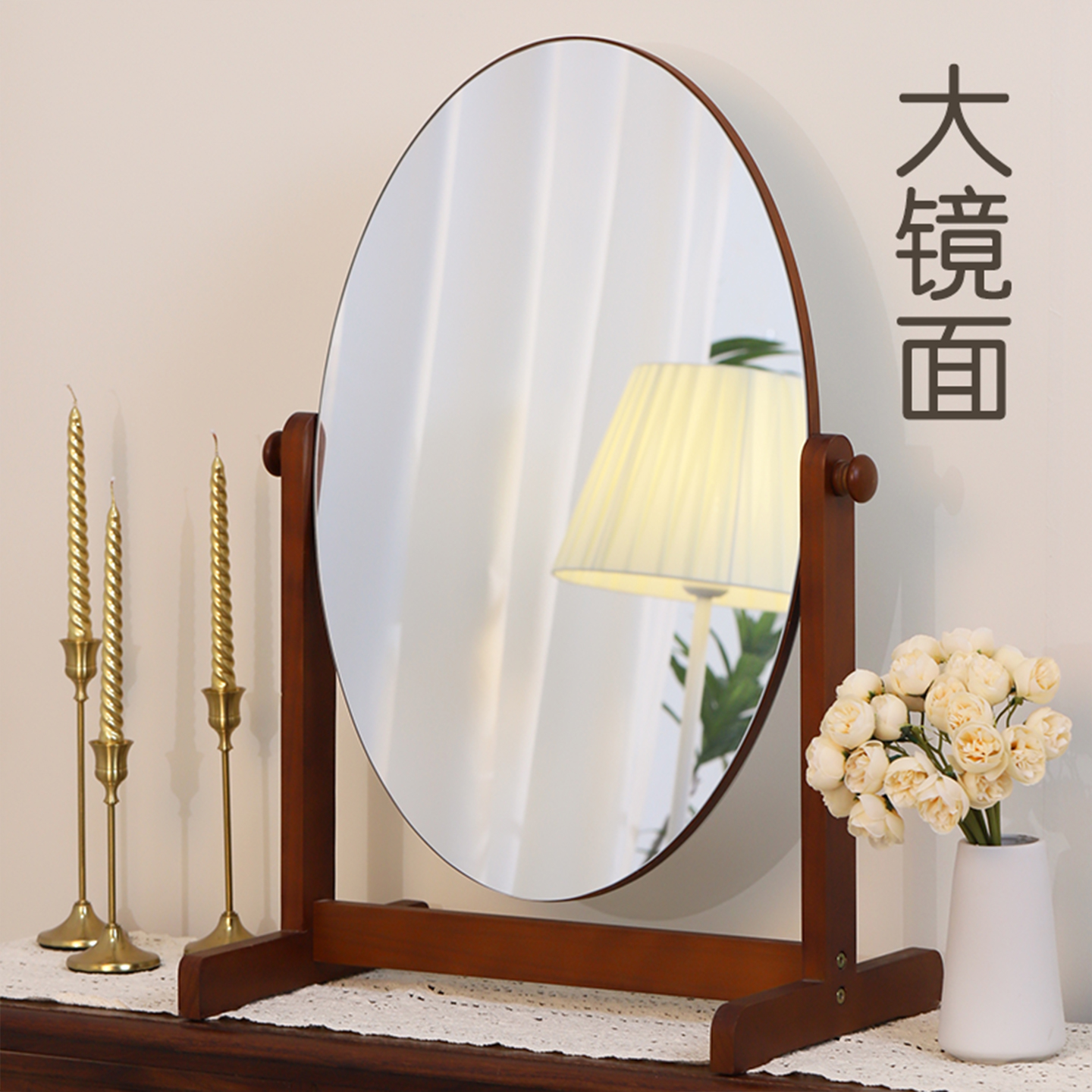 化妆镜台式 旋转梳妆镜现代简约大台镜 双面镜圆镜桌面镜子实木中式