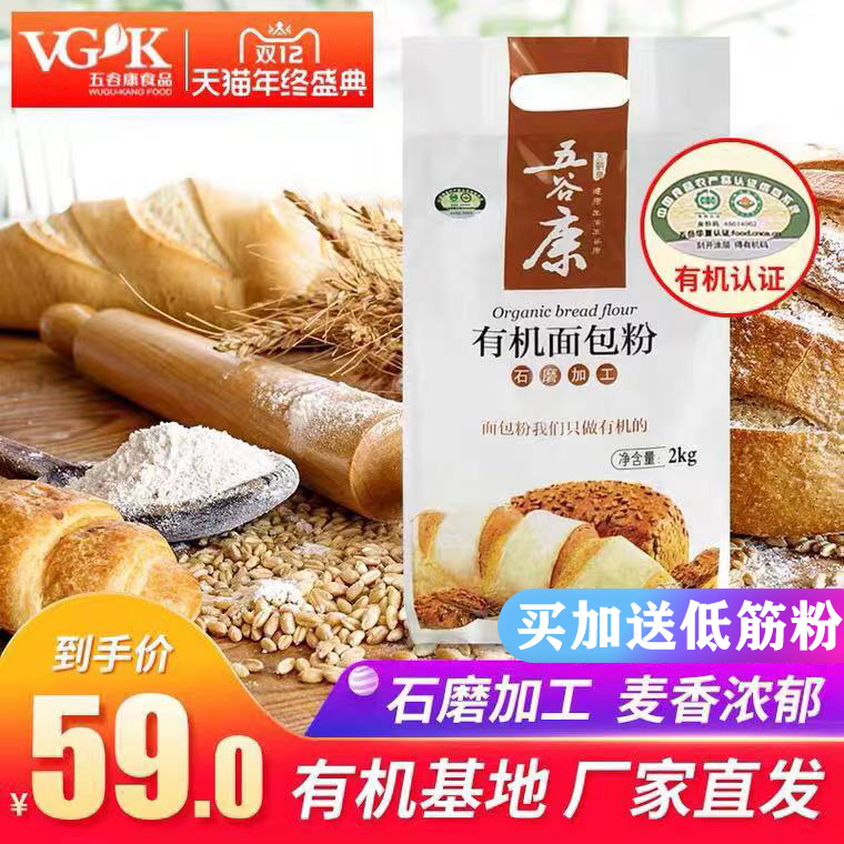 五谷康有机面包粉2kg高筋面粉家用烘焙原材料土司披萨专用小麦粉
