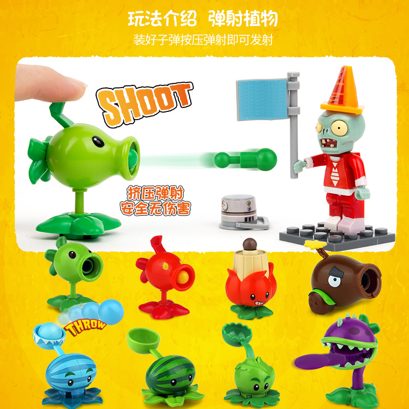 植物大战僵尸玩具儿童益智可弹射积木启蒙拼装 拼插儿童节圣诞礼物