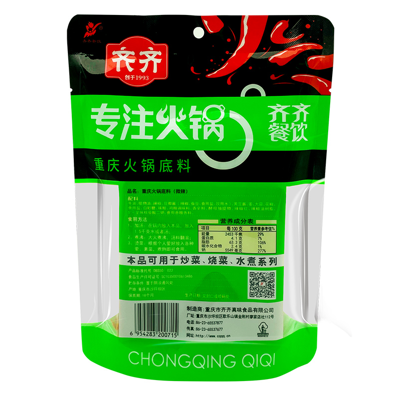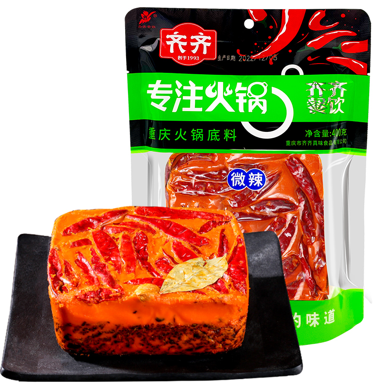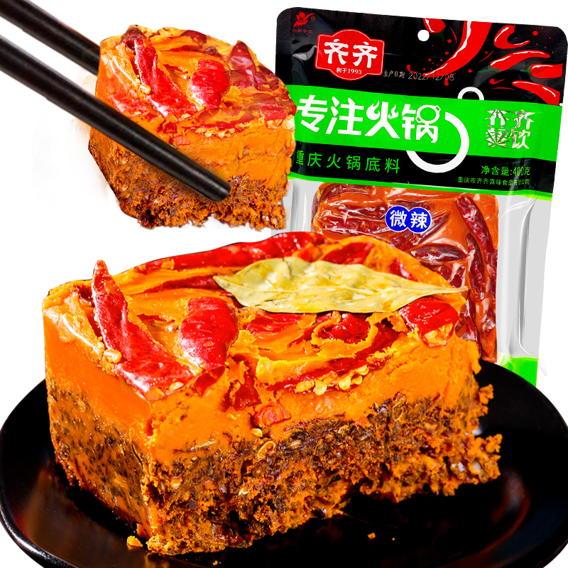 重庆特产齐齐火锅底料400g微辣精品牛油老火锅手工制作麻辣烫调料