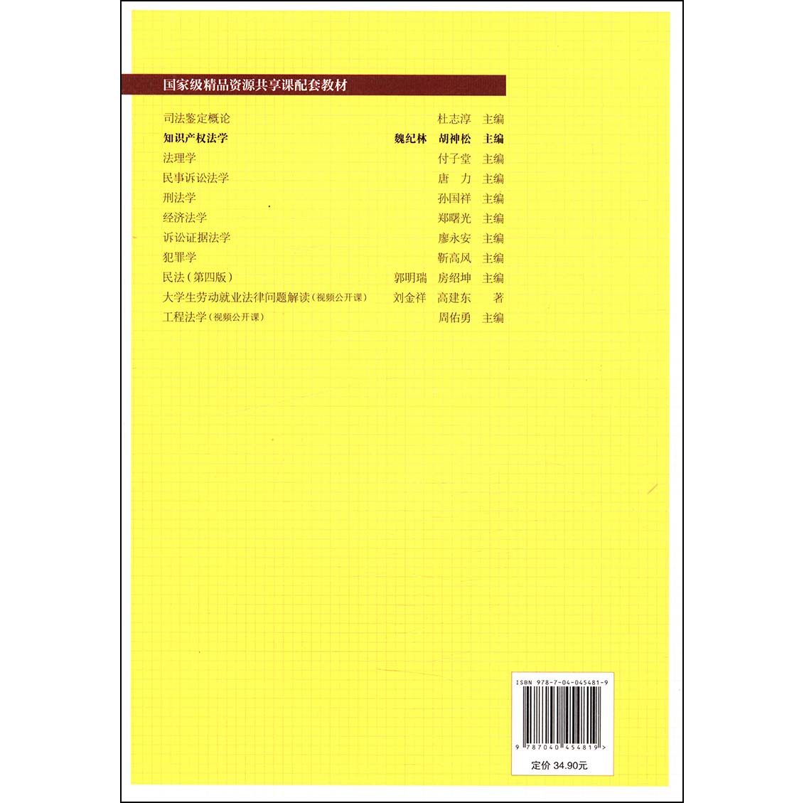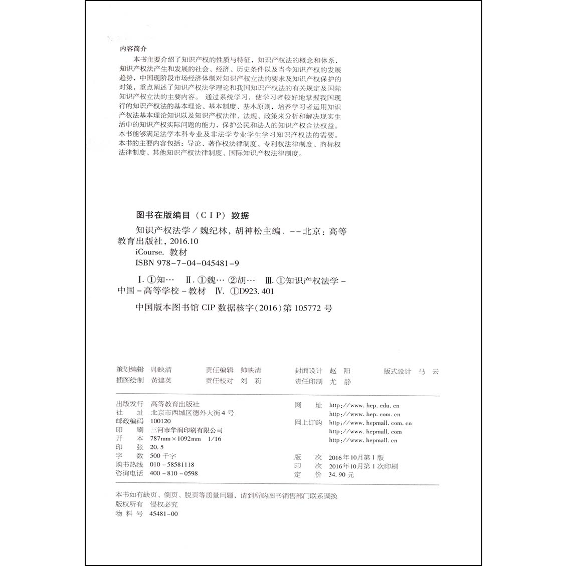 知识产权法学 社 魏纪林著作权法律制度专利权法律制度商标权法律制度其他知识产权法律制度国际知识产权法律制度高等教育出版