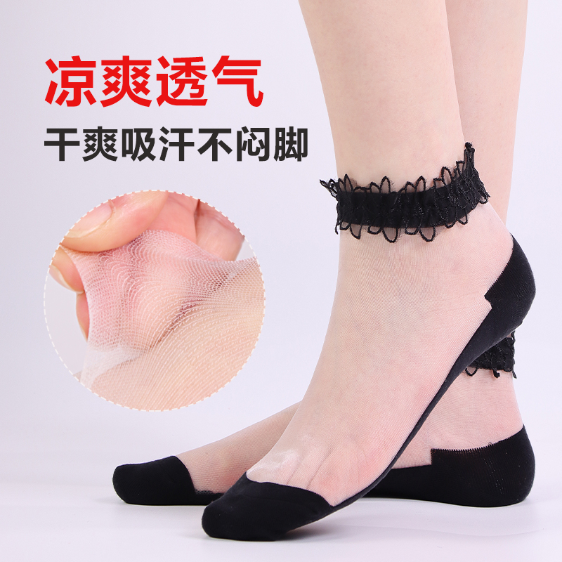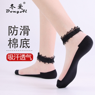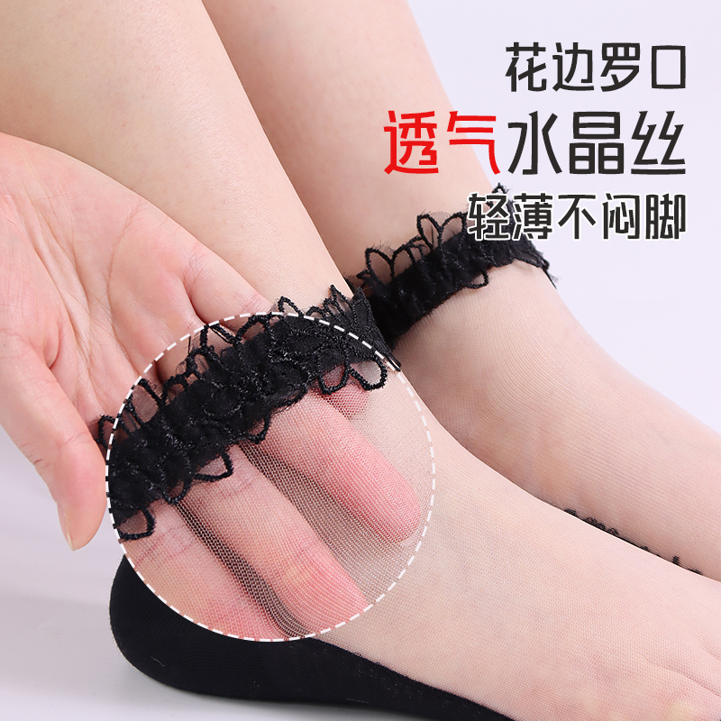 袜子女夏季 丝袜花边可爱防臭花边水晶袜透气防滑棉底玻璃丝袜短袜