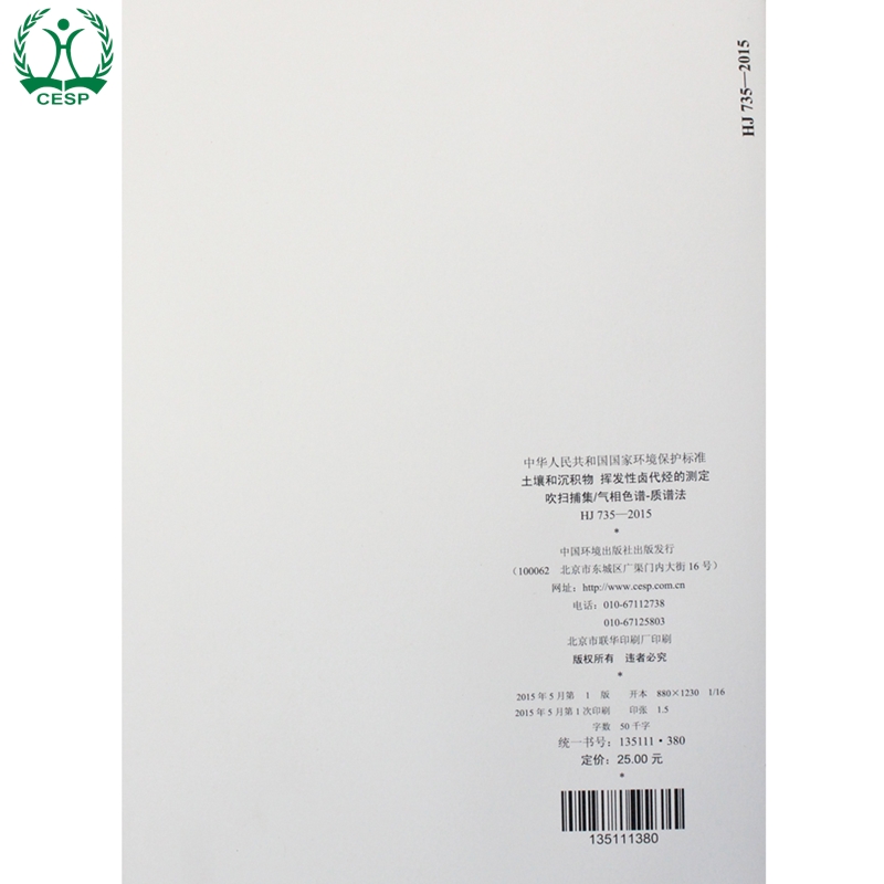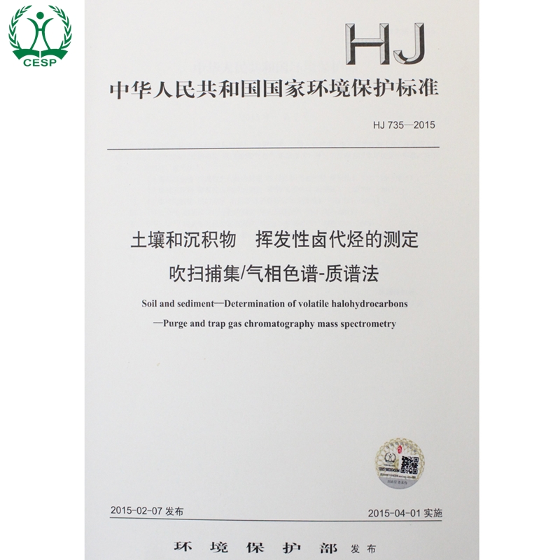 735 社135111380 中国环境出版 吹扫捕集 官方旗舰店 气相色谱 土壤和沉积物 2015 国标环境保护 挥发性卤代烃 质谱法 测定