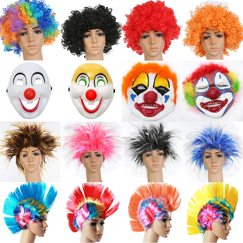 cosplay小丑表演出道具搞笑装 扮乳胶面具假发帽子头套红鼻子面套