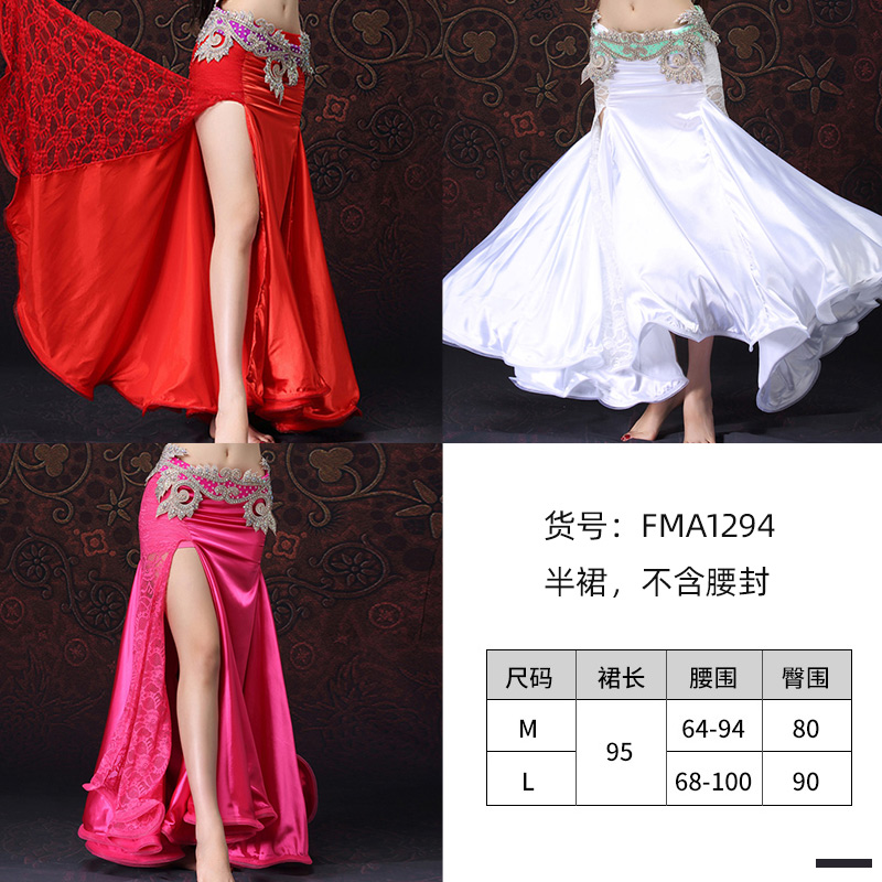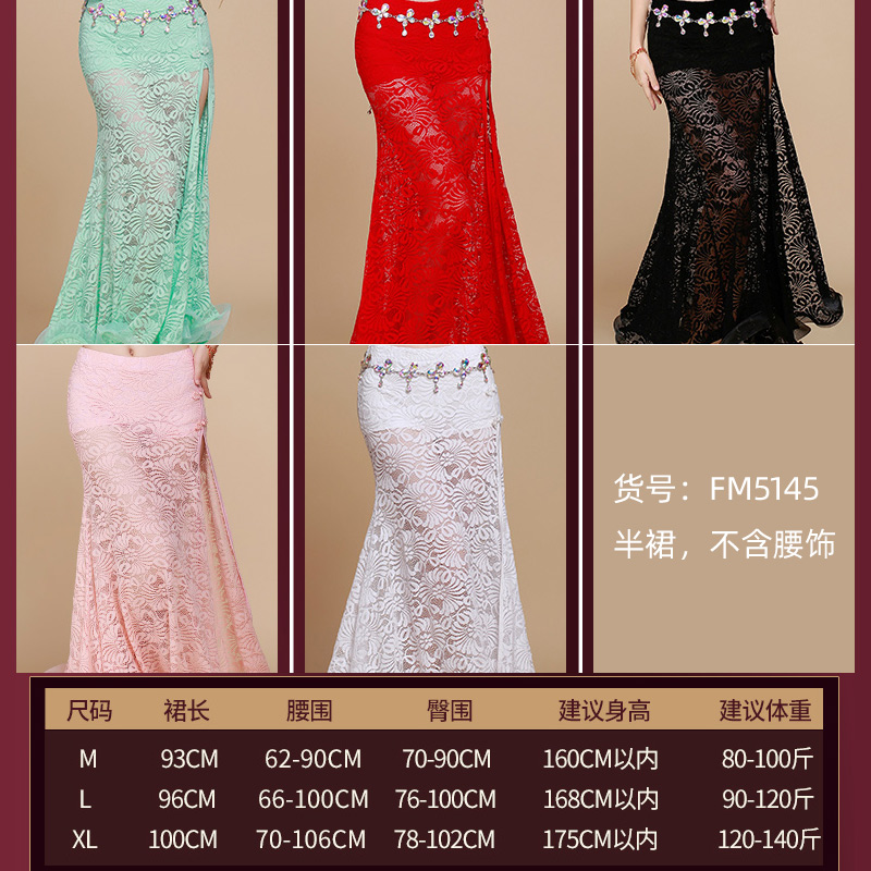 大码 飞魅 女 练功服长裙性感下装 5色 肚皮舞裙子蕾丝开叉半身裙