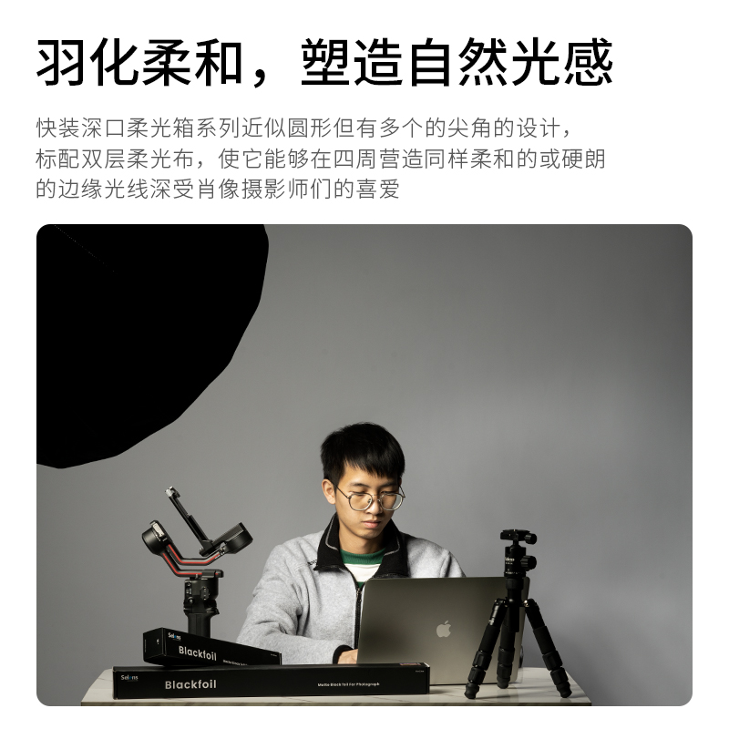 Selens快装 型深口抛物线柔光箱十六角保荣口摄影棚便携伞型柔光罩补光灯人像柔光灯罩折叠直播小型闪光灯格栅