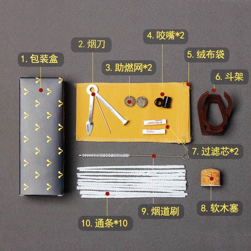 福腾鱼雷艇烟斗华云同款 烟杆雪茄烟斗工具全套 实木随身斗用丝老式