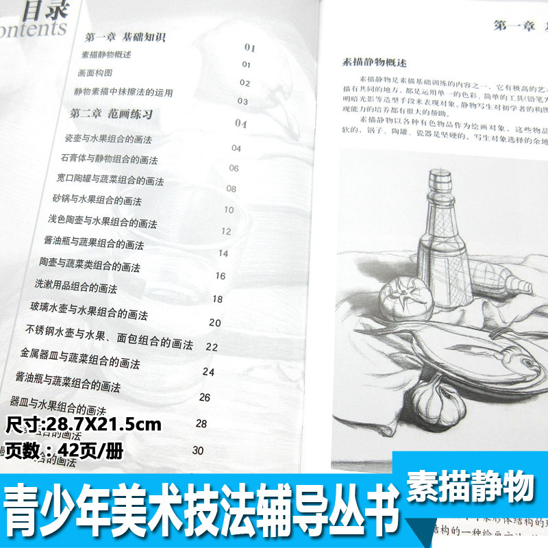 青少年美术技法辅导丛书 临摹书临摹范本美术书静物临摹范本陶罐器皿组合初高中培训教程零基础入门明暗画法铅笔书 素描静物