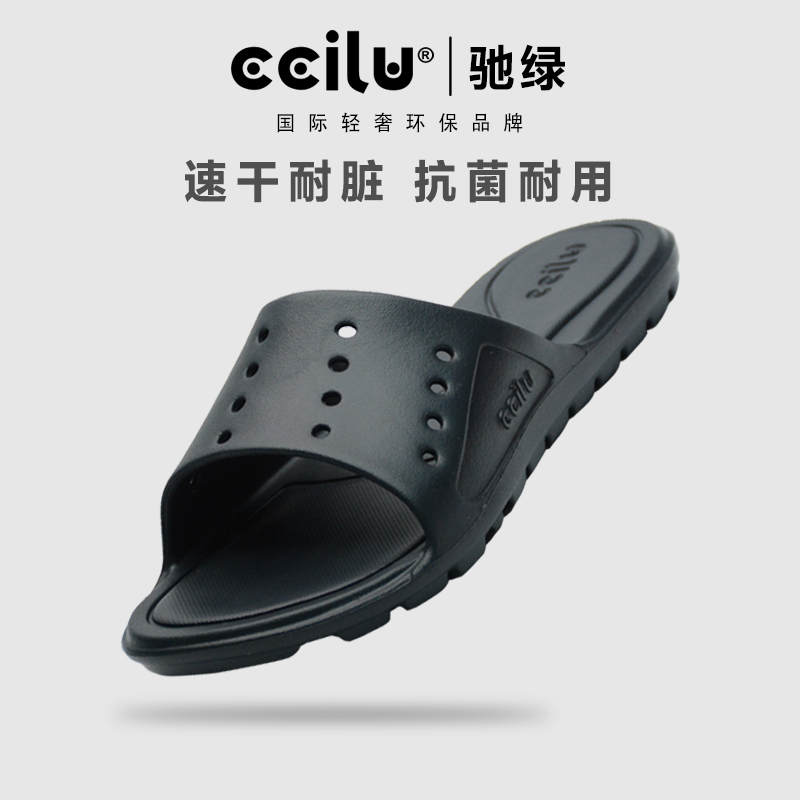 ccilu驰绿拖鞋 洗澡防滑软底Q弹凉拖简约一字拖 男女室内家居拖鞋
