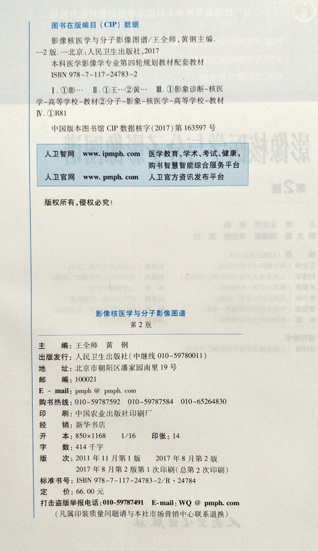 人民卫生出版 9787117247832 影像核医学与分子影像图谱 规划教材 王全师 十三五 正版 第2版 社 黄钢主编 包邮