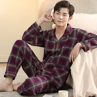 春秋款 全棉秋冬套装 纯棉长袖 家居服男款 格子宽松爸爸新款 睡衣男士
