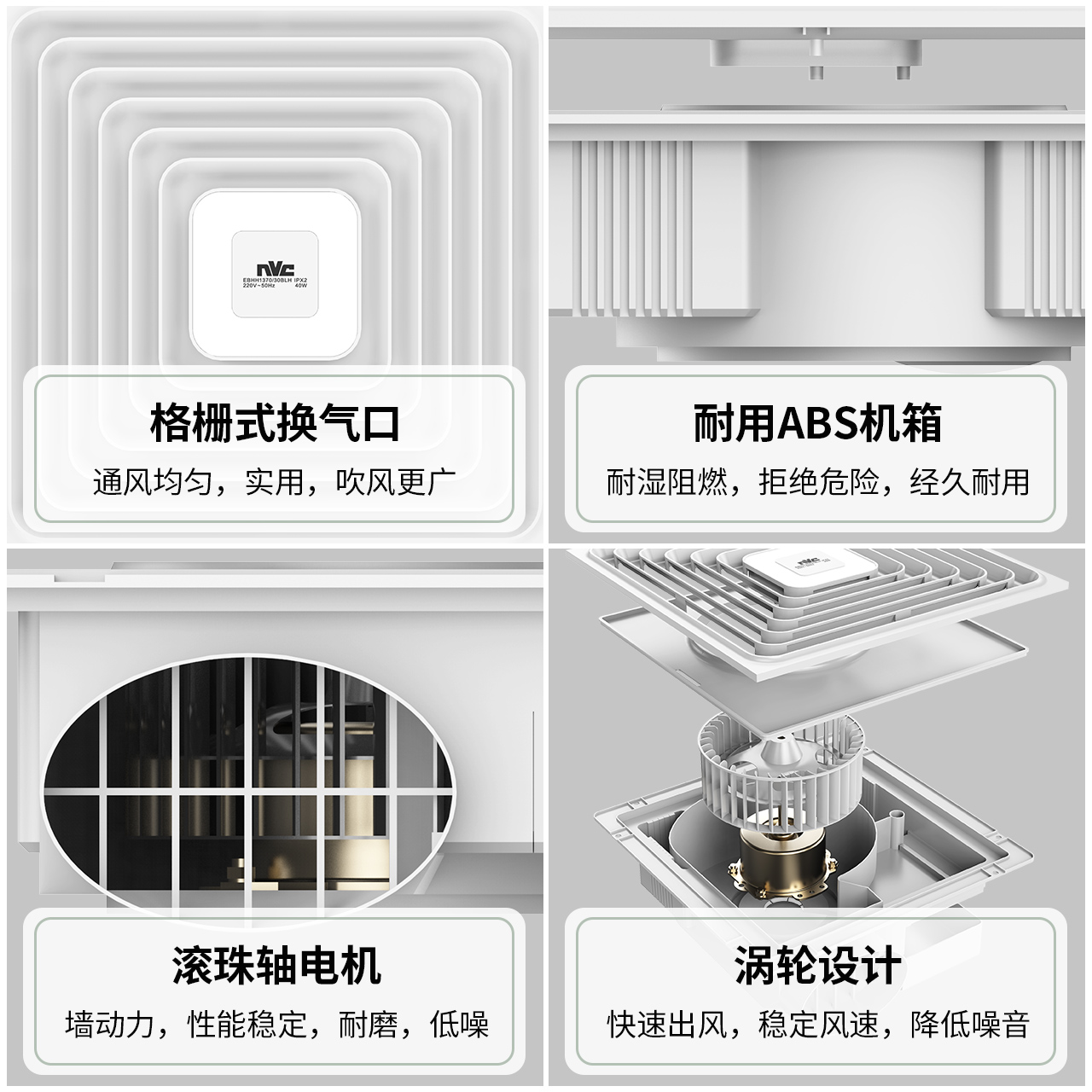 雷士照明集成吊顶换气扇厨房卫生间厕所家用二合一嵌入排气扇30cm