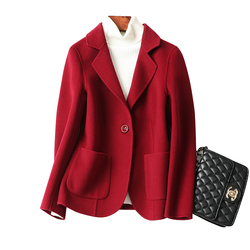 圆领大衣女小个子气质毛呢外套 高端羊毛双面呢短款 2025年春季 新款