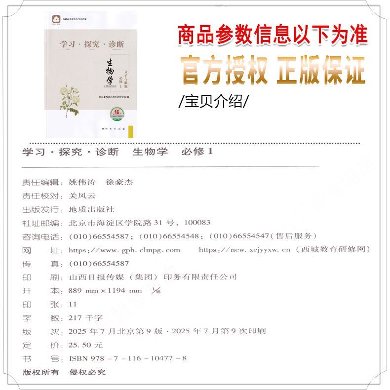 学习探究诊断 第16学探诊高中一年级生物必修1一 生物 分子与细胞 2025北京市西城区教育研修学院编 必修1 2025秋北京西城
