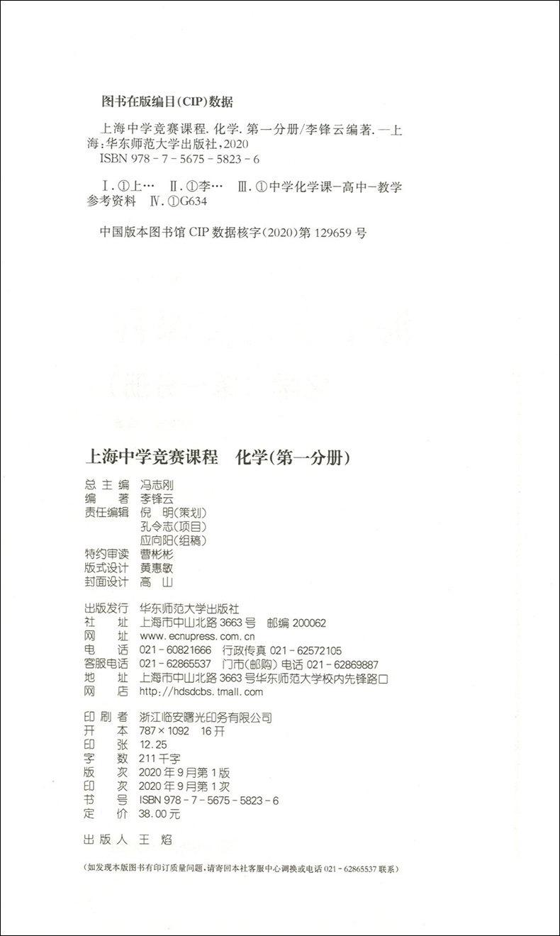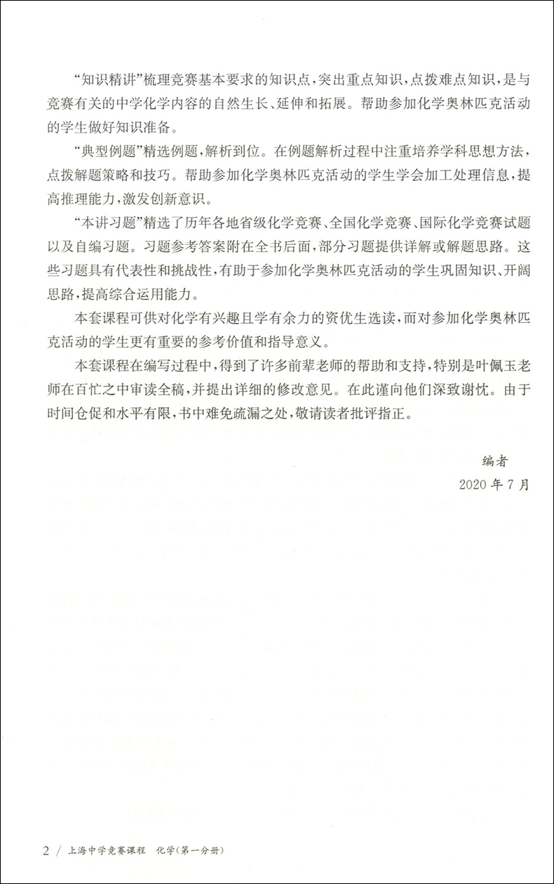高一高二高三化学兴趣班提高尖子生资优等生参考资料选读用书 上海中学竞赛课程 高中化学奥林匹克用书 第一分册 中学教辅 化学