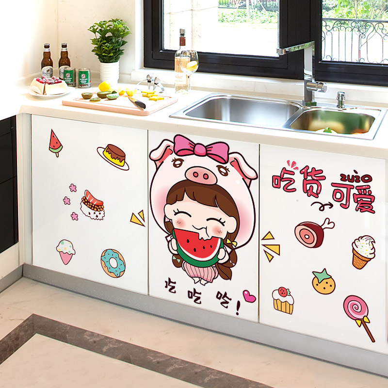 卡通厨房柜子装 饰橱柜门翻新改造防水贴纸门贴自粘墙贴画面板贴膜