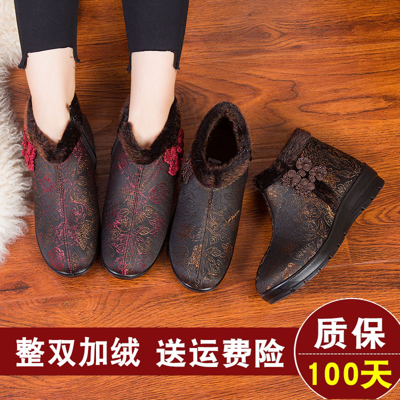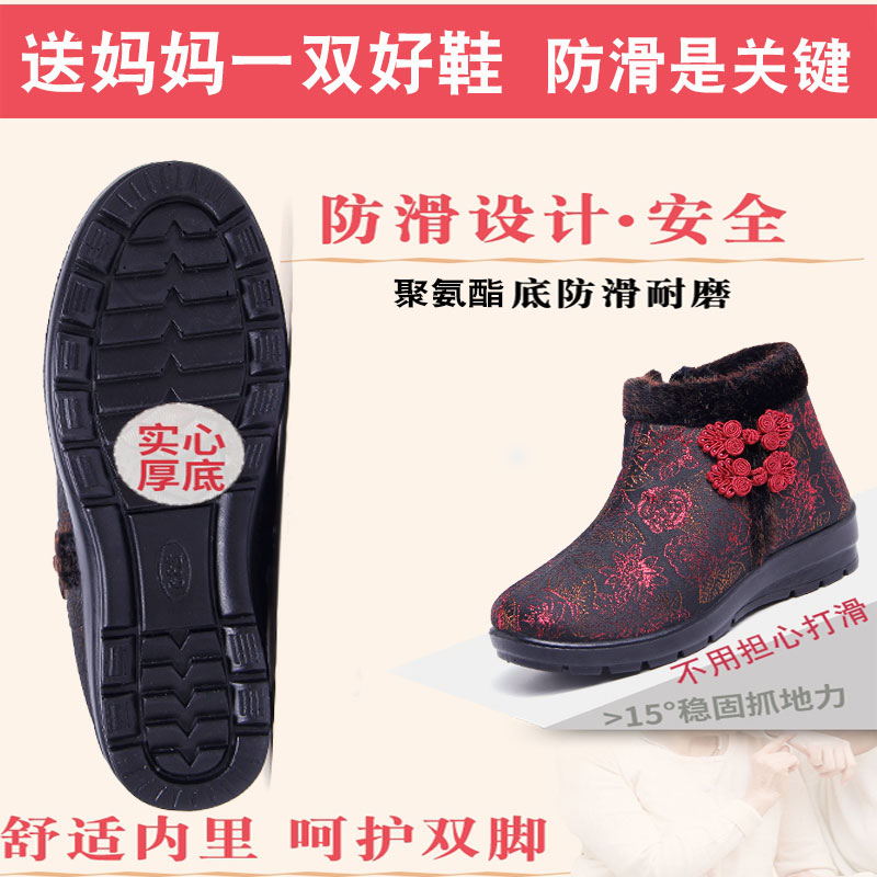 软底休闲中老年人加绒高帮皮面妈妈鞋 足力健旗舰店2024年冬季 新款