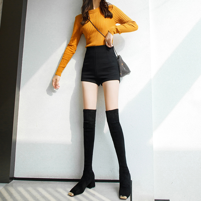 显瘦百搭a字辣妹女团热裤 弹力修身 女外穿夏2025爆款 黑色高腰短裤