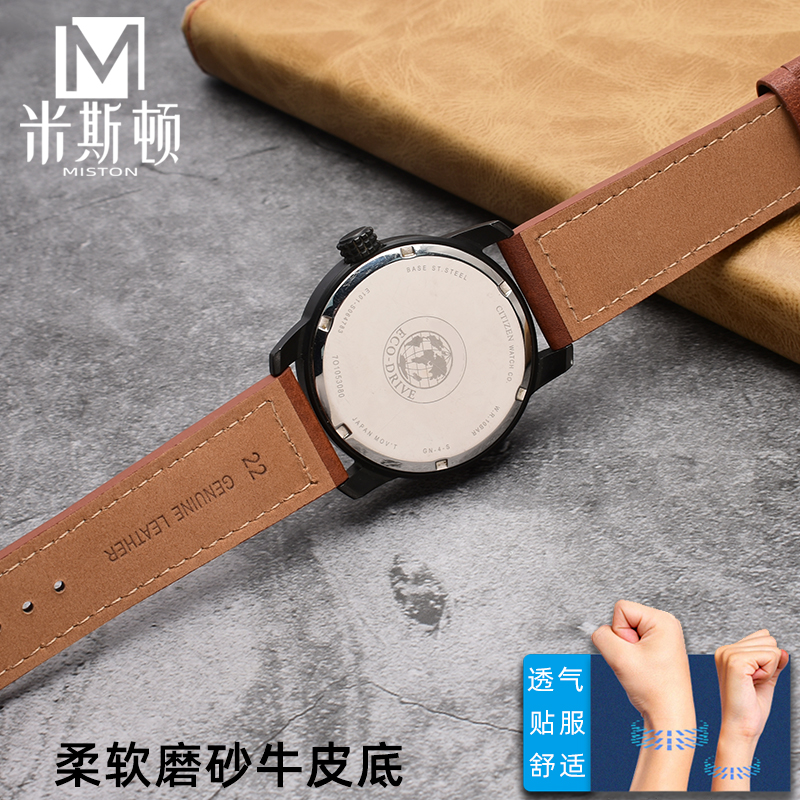 适配西铁城手表带骚橙BM8475光动能表链CA0695 0690牛皮腕带新品