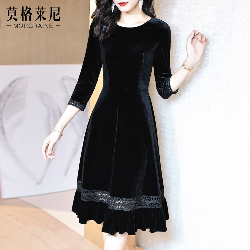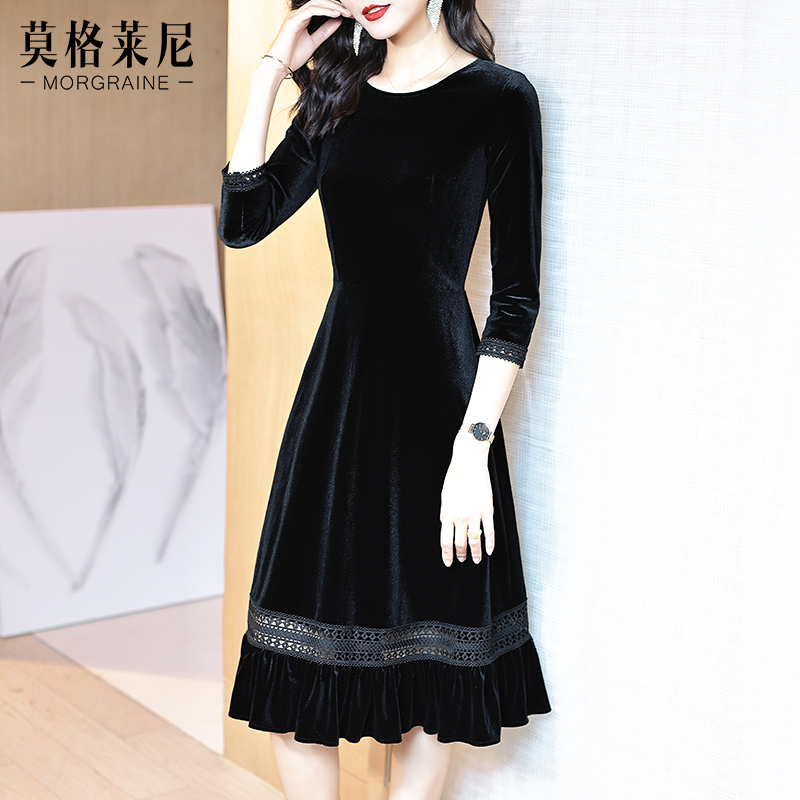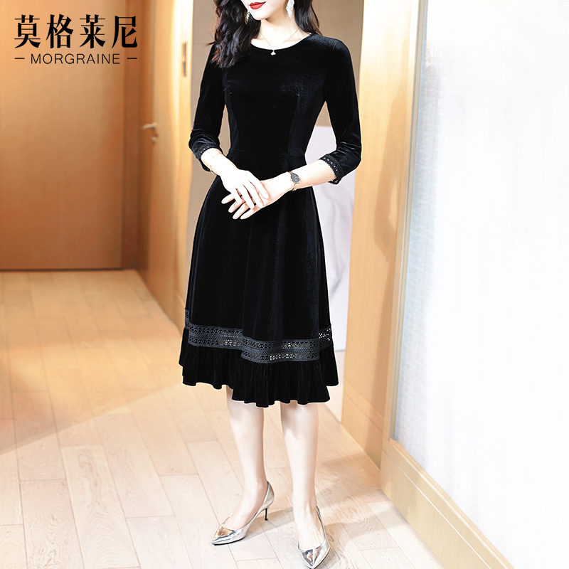 歌莉娅丝绒连衣裙女秋季 裙子 穿搭高级感重要场合大方得体端庄长袖