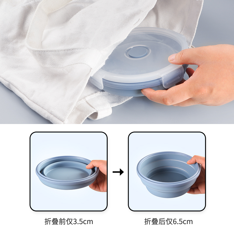食品级硅胶折叠碗便携式 旅行餐具碗儿童宝宝上班族户外折叠碗带盖