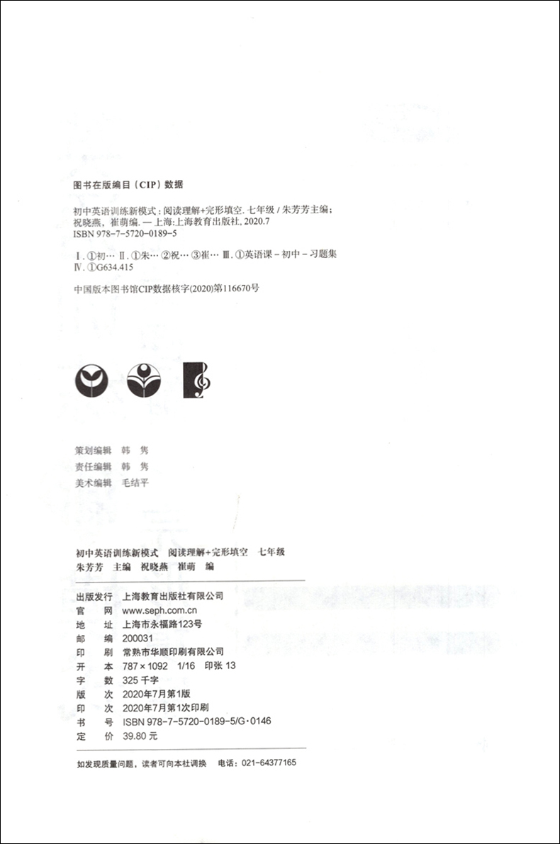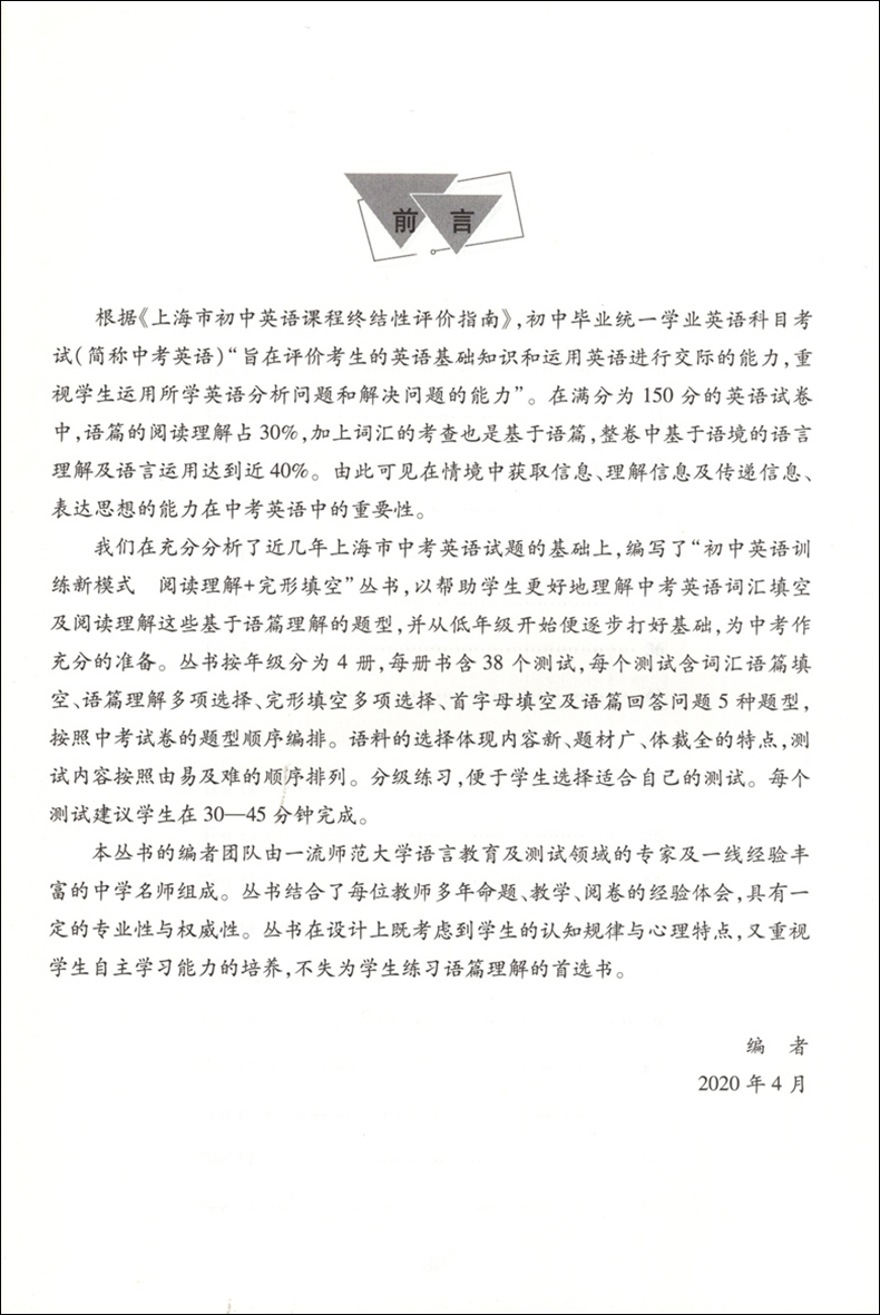 首字母填空 阅读理解 上海教育出版 初中英语训练新模式 社 含答案 完形填空 6789上下册上海中考新题型 任选 六七八九年级