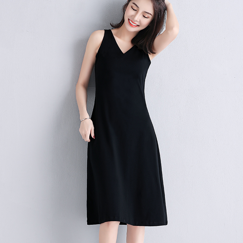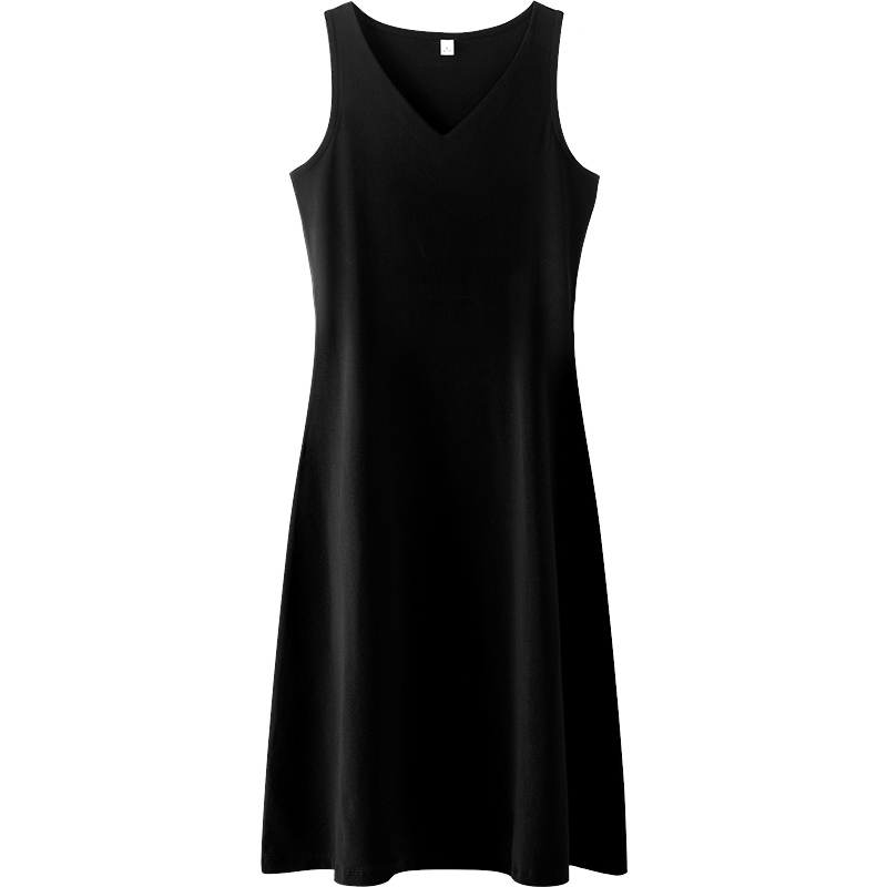 修身 夏季 气质a字打底吊带背心裙子 连衣裙女内搭中长款 黑色V领无袖