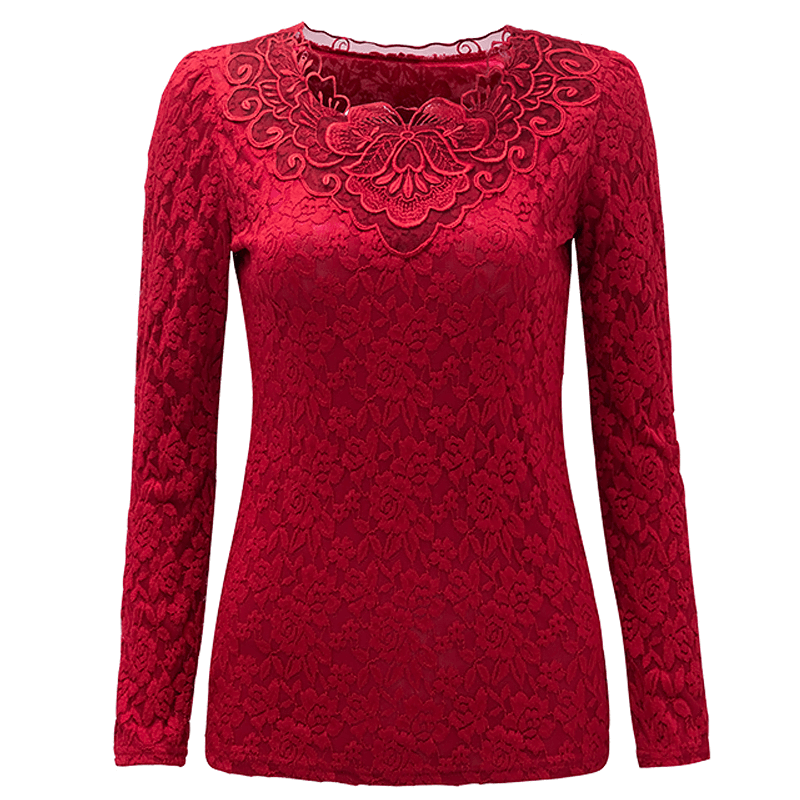 气质中老年妈妈装 女2025新款 加绒上衣 宽松黑色洋气蕾丝打底衫 大码