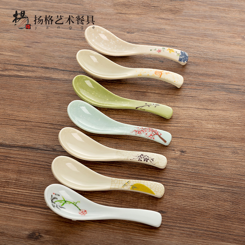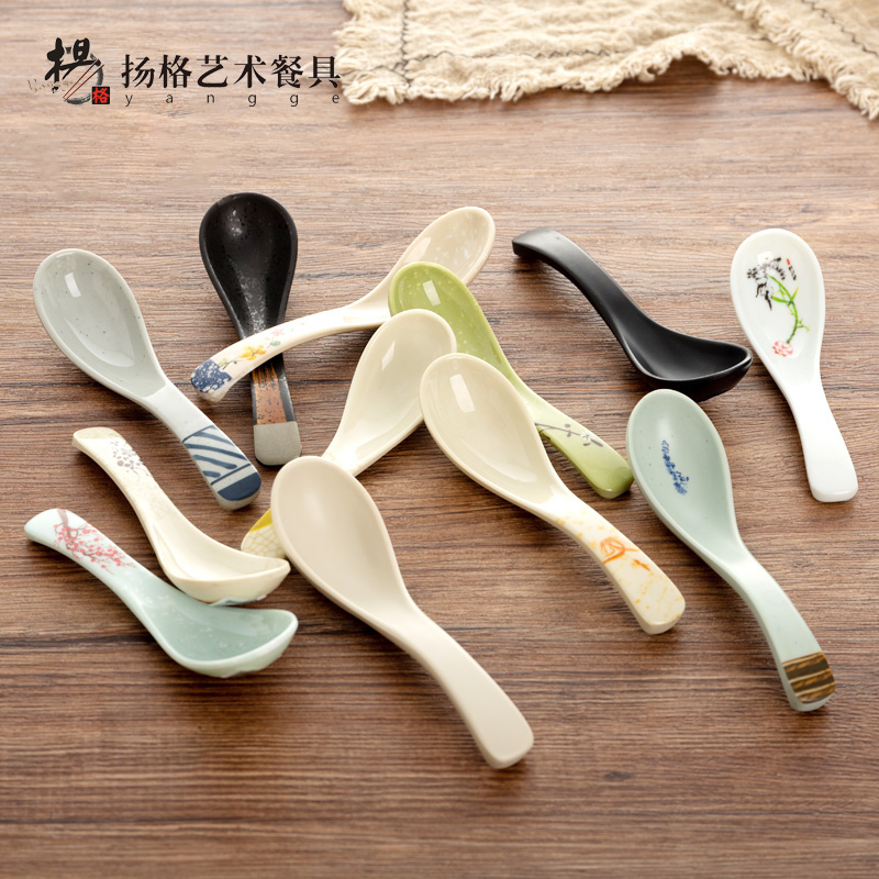 A5密胺勺子仿瓷功夫勺喝粥勺耐摔调羹弯勾汤勺汤羹勺子 10个装