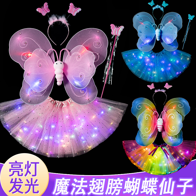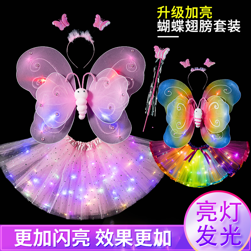六一儿童节女童礼物发光蝴蝶翅膀亮灯奇妙仙子背饰小女孩演出服装