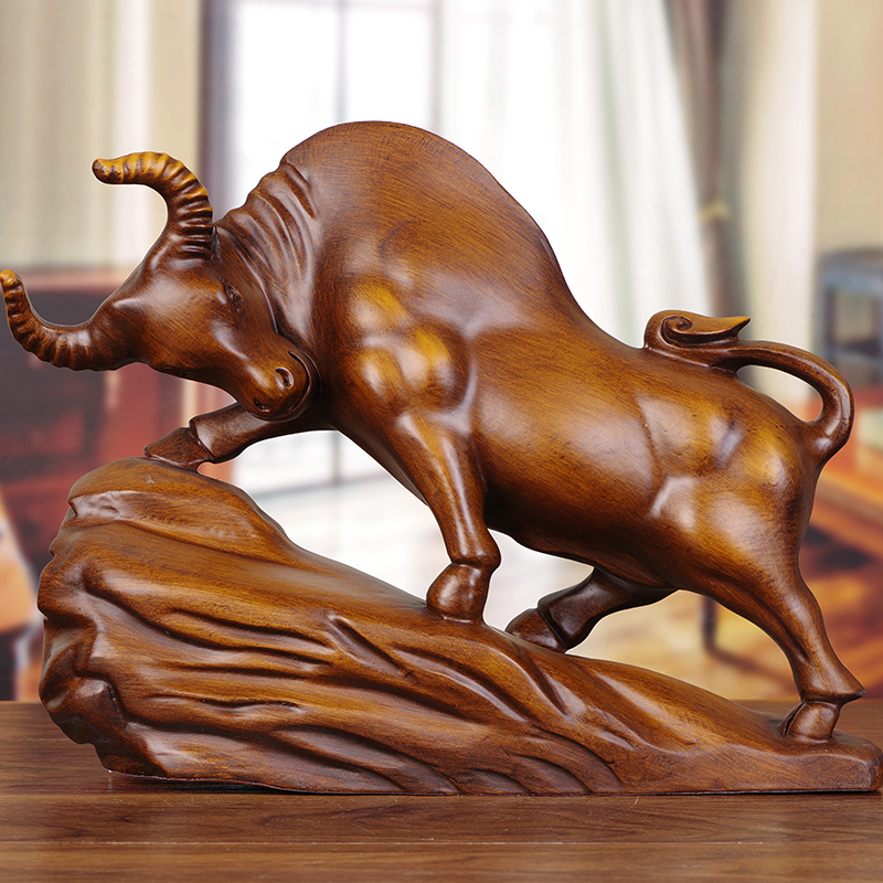 木雕牛摆件奋斗牛年会商务礼品公司开业实木工艺品办公室桌面装 饰