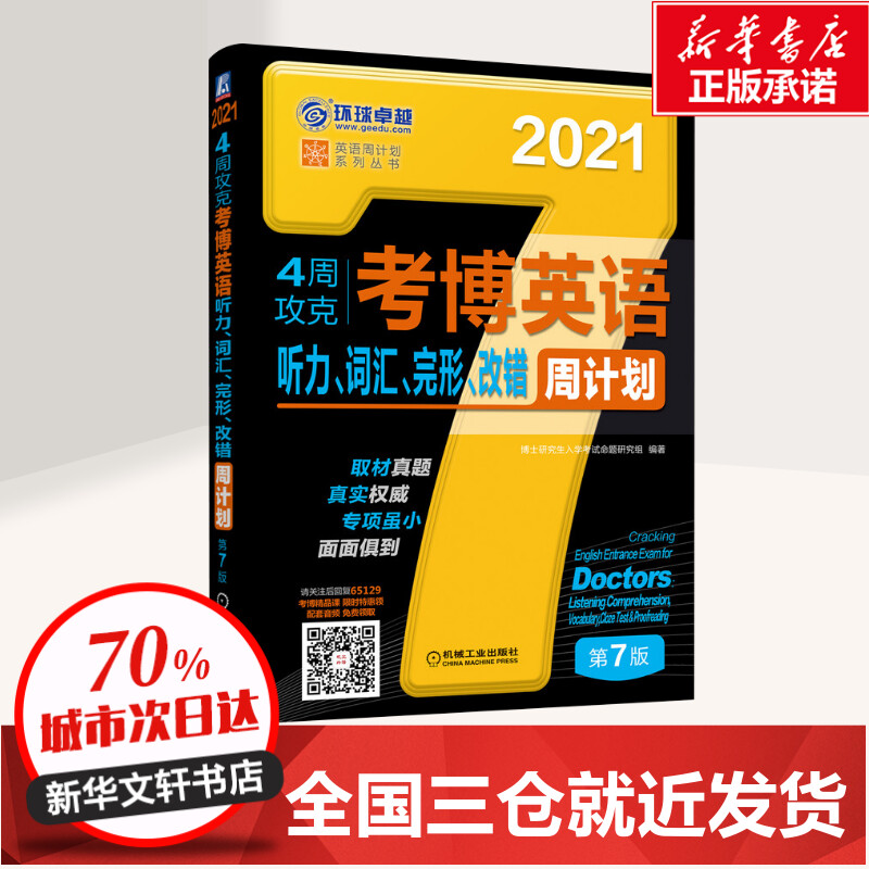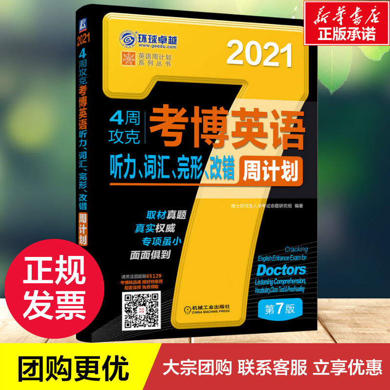 博士研究生入学考试命题研究组 文教 完形 新 考研 著 2021 第7版 改错周计划 词汇 4周攻克考博英语听力
