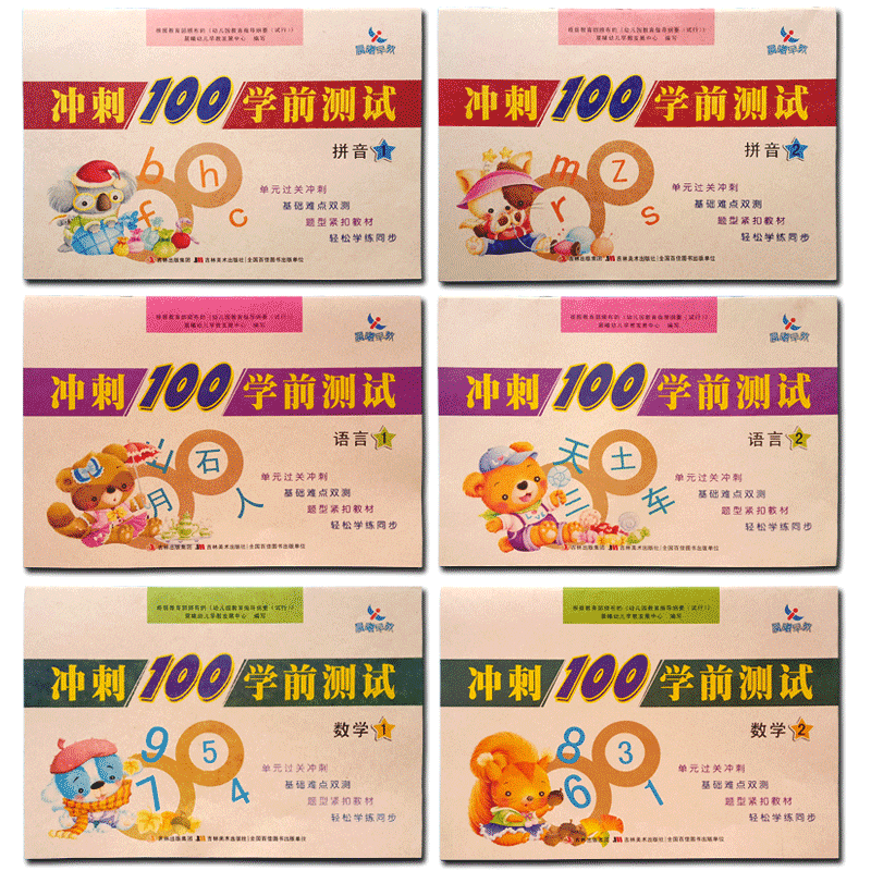 共6本幼儿学前测试卷 2册 幼小衔接识字一日一练大班升一年级试卷 幼小衔接冲刺100分学前测试卷拼音语言册数学1 全套6册晨曦早教