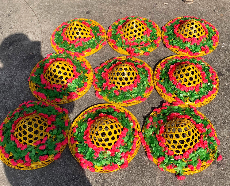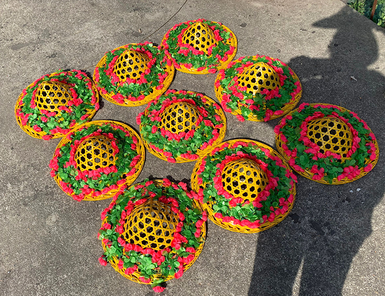 舞蹈彩色斗笠广场舞帽子草帽斗笠竹编舞台表演演出斗笠道具镂空帽