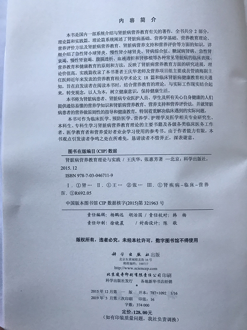 王庆华张惠芳 肾脏病营养教育理论与实践 编著医学肝肾脏病学教育理论实践教材肾脏病诊断治疗方案肾衰竭瘤化分析指南 科学直供