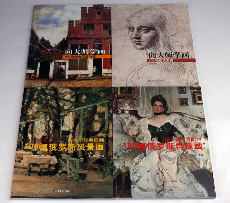 向大师学素描世界西方名家经典 大师素描和风景油画肖像画 素描 100幅经典 人物人体头像肖像素描画册图典画集画册临摹绘画书籍 4册