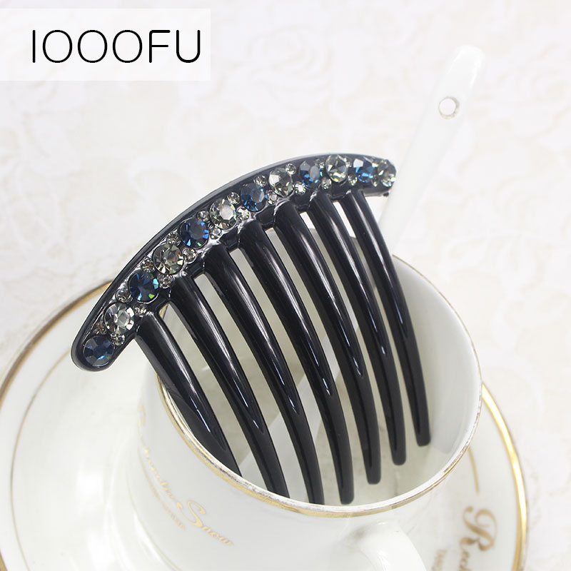 黑色卡碎发盘发饰品 韩国水晶水钻大发梳发卡 长款 大号多发量插梳