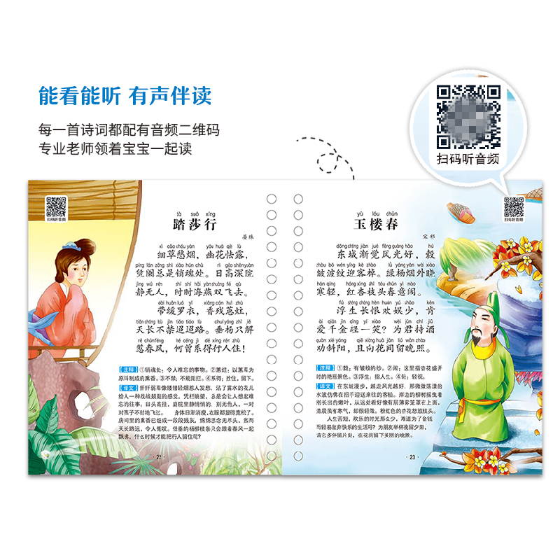 小学生必背宋词一二年级国学经典 有声伴读彩图注音版 早教启蒙图画书3 10岁幼儿园用书故事书宋词撕不烂睡前故事 宋词精选 正版