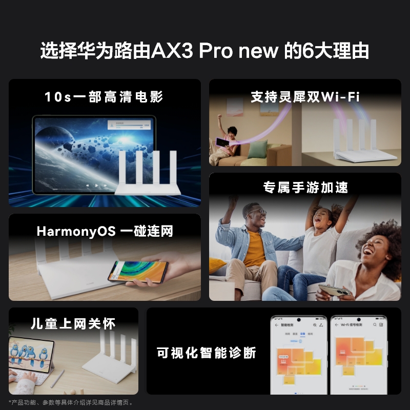 全千兆端口家用无线路由器WiFi6 Pro 华为路由AX3 WiFi7高速5G双频全屋WiFi覆盖大户型mesh组网 多仓顺丰