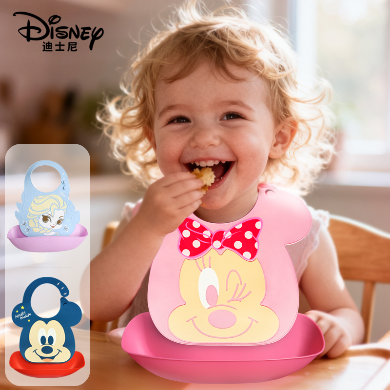 迪士尼宝宝硅胶饭兜 婴儿喂饭辅食围兜6月幼儿园儿童吃饭防水围嘴