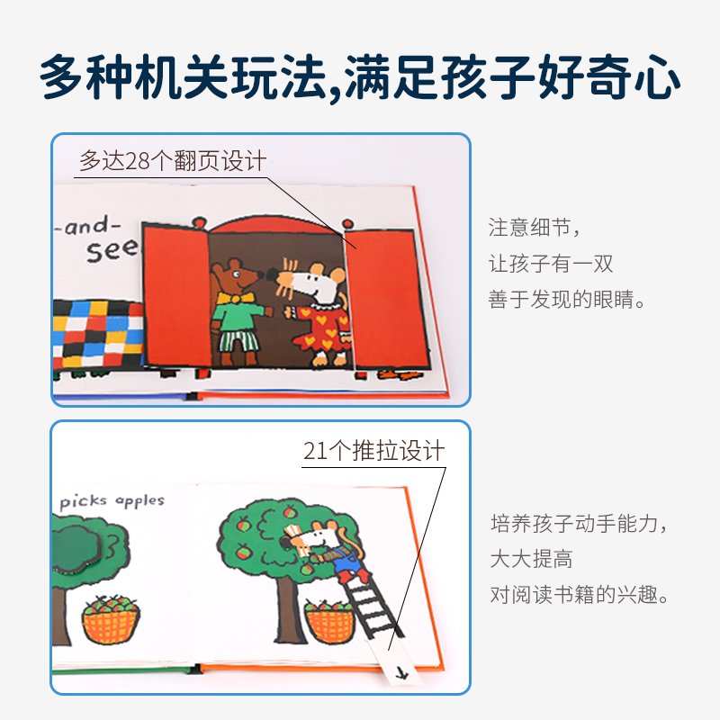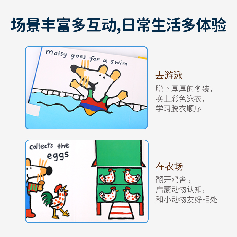 蓝盒 橙盒机关书 绘本 点读版 毛毛虫点读笔配套书 英文原版 maisy小鼠波波套装 6册贴纸书 小彼恩图书 6册翻翻抽拉书