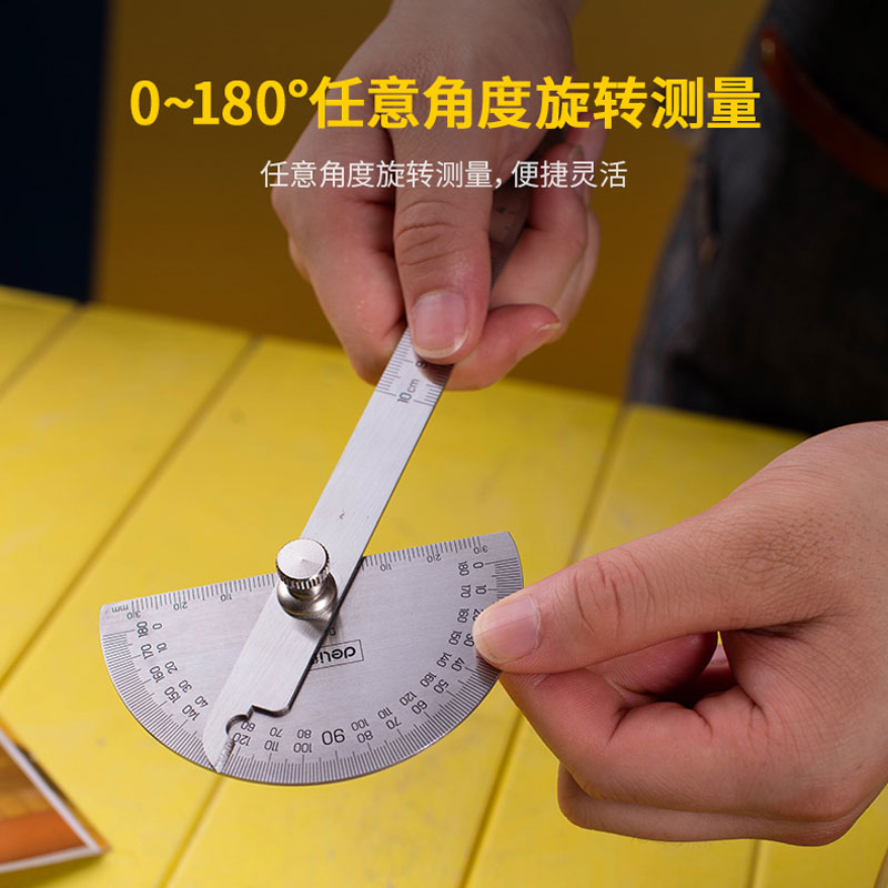 得力量角器不锈钢角度尺测量角度角尺木工分度规角度规五金工具