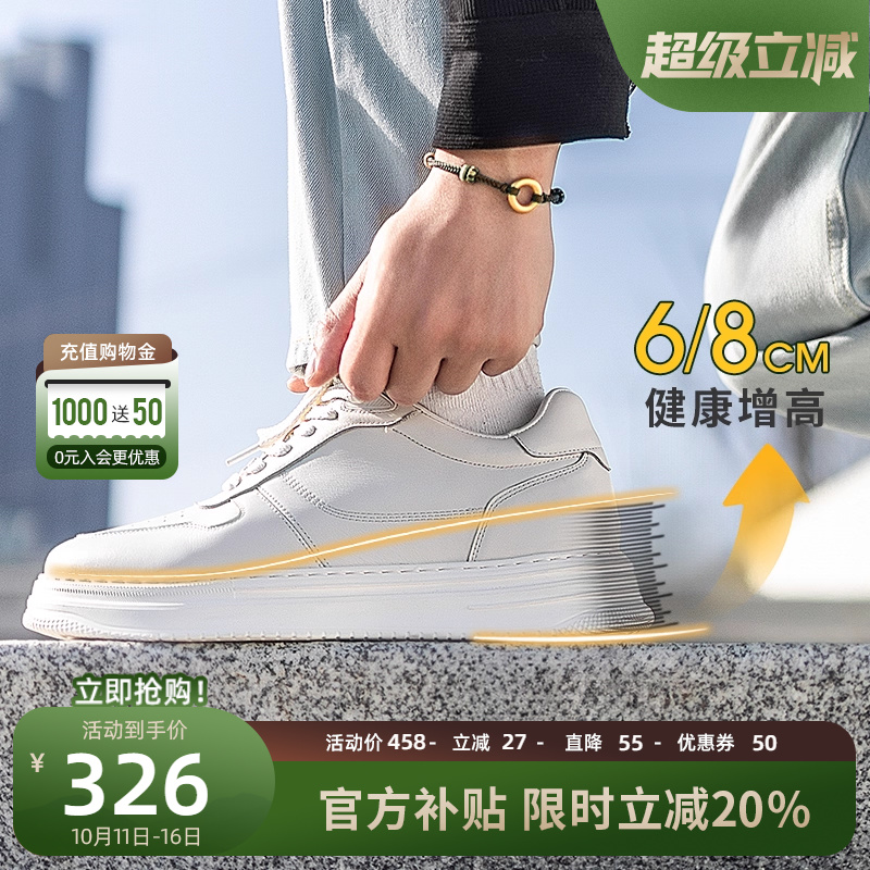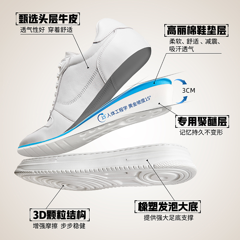 轻便厚底内增高小白鞋 高哥增高鞋 皮面运动男鞋 休闲板鞋 男 8cm新款