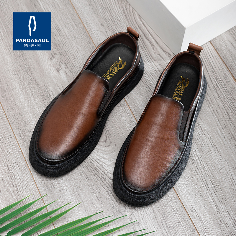休闲皮鞋 新款 男士 软底一脚蹬真皮鞋 红蜻蜓男鞋 子男中年爸爸鞋 秋季