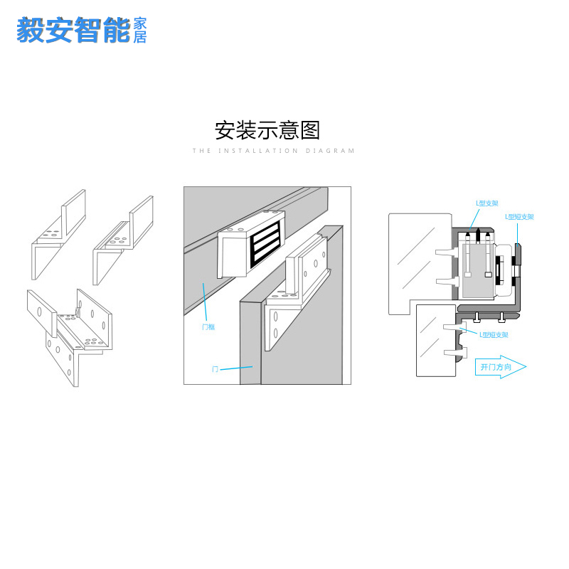 门禁磁力锁LC支架280kg明装 单双门内开辅助lz型三件套铝合金 暗装