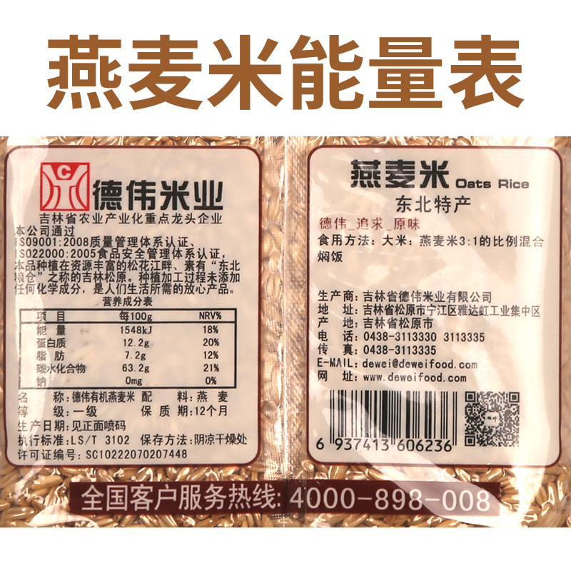 德伟有机燕麦米 裸燕麦胚芽米400克 东北五谷杂粮米生燕麦仁颗粒