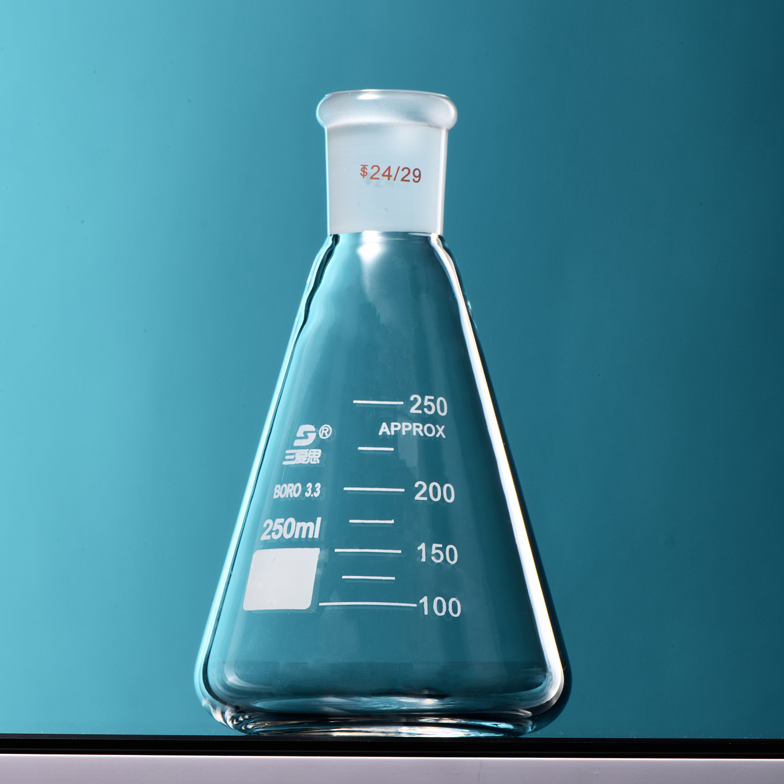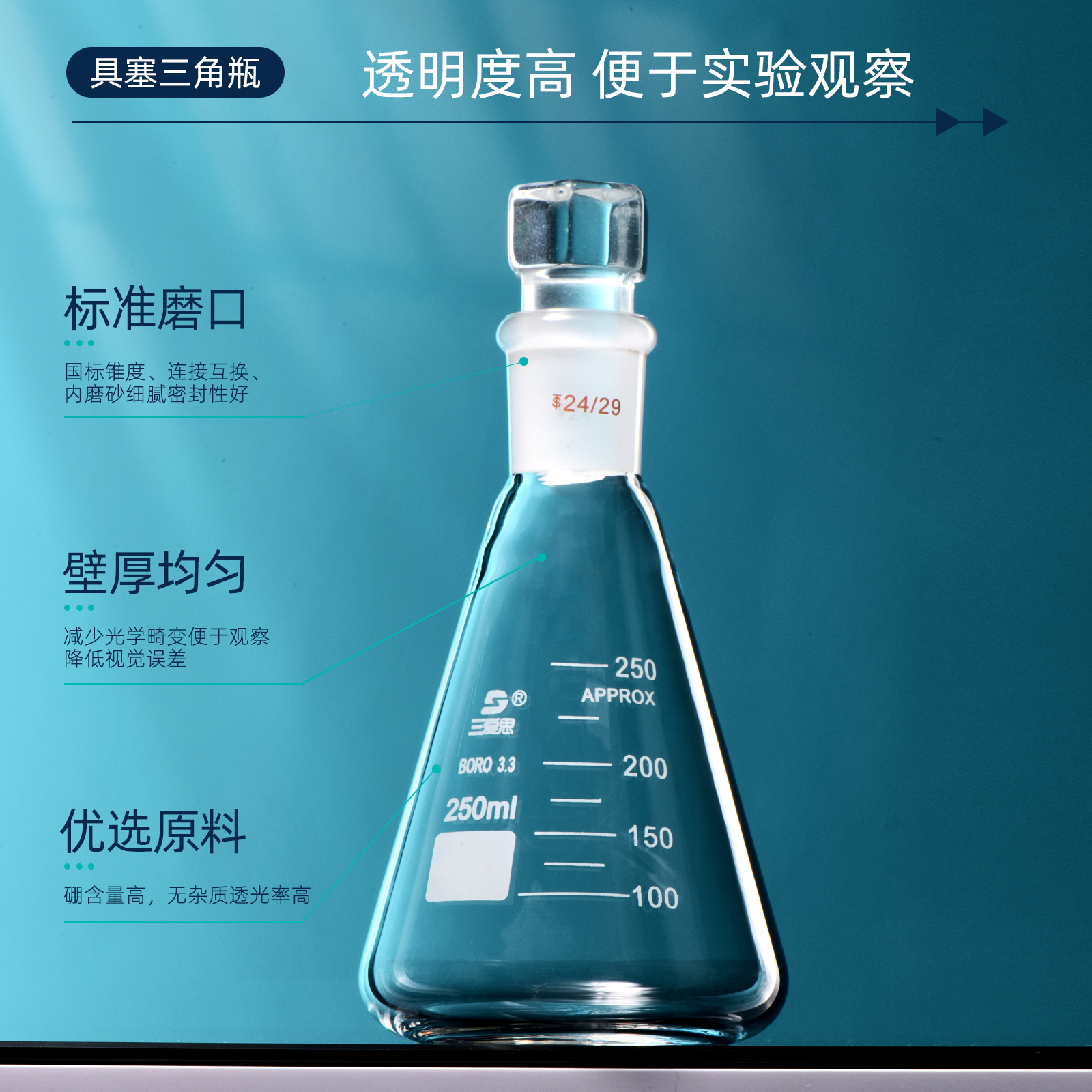 三爱思磨口三角烧瓶烧杯棕色葫芦体锥形瓶直口广口标口50mL 5L带塞化验室瓶子具塞透明玻璃刻度硅胶塞橡胶塞
